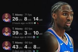 在赛前的前五场比赛中,马克西场均能得到35.2分,上一个赛季前五战场均得分高于他的还是2019年的哈登(场均36.6分)。
